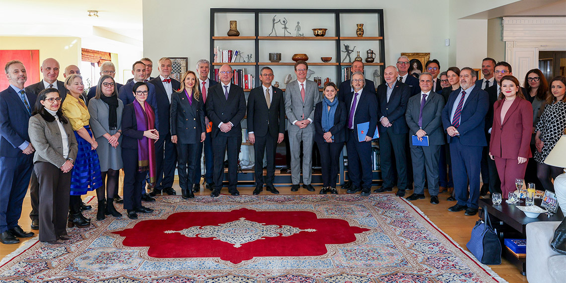 Partiden yapılan açıklamaya göre, CHP Genel Başkanı Özgür Özel, Ankara’da AB Türkiye Delegasyonu Başkanı Nikolaus Meyer Landrut ev sahipliğinde AB’ye üye ülkelerin büyükelçileri ile öğle yemeğinde bir araya geldi.