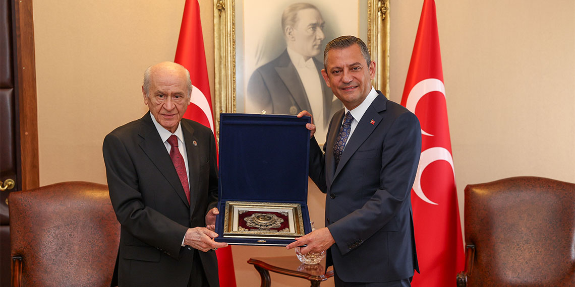 Özgür Özel, Cumhurbaşkanı Recep Tayyip Erdoğan ile geçen hafta yaptığı görüşmenin ardından bu kez MHP Genel Başkanı Devlet Bahçeli ile bir araya geldi. Özgür Özel, TBMM’de partisinin grup toplantısından hemen önce Bahçeli’yi Meclis’teki makamında ziyaret etti.