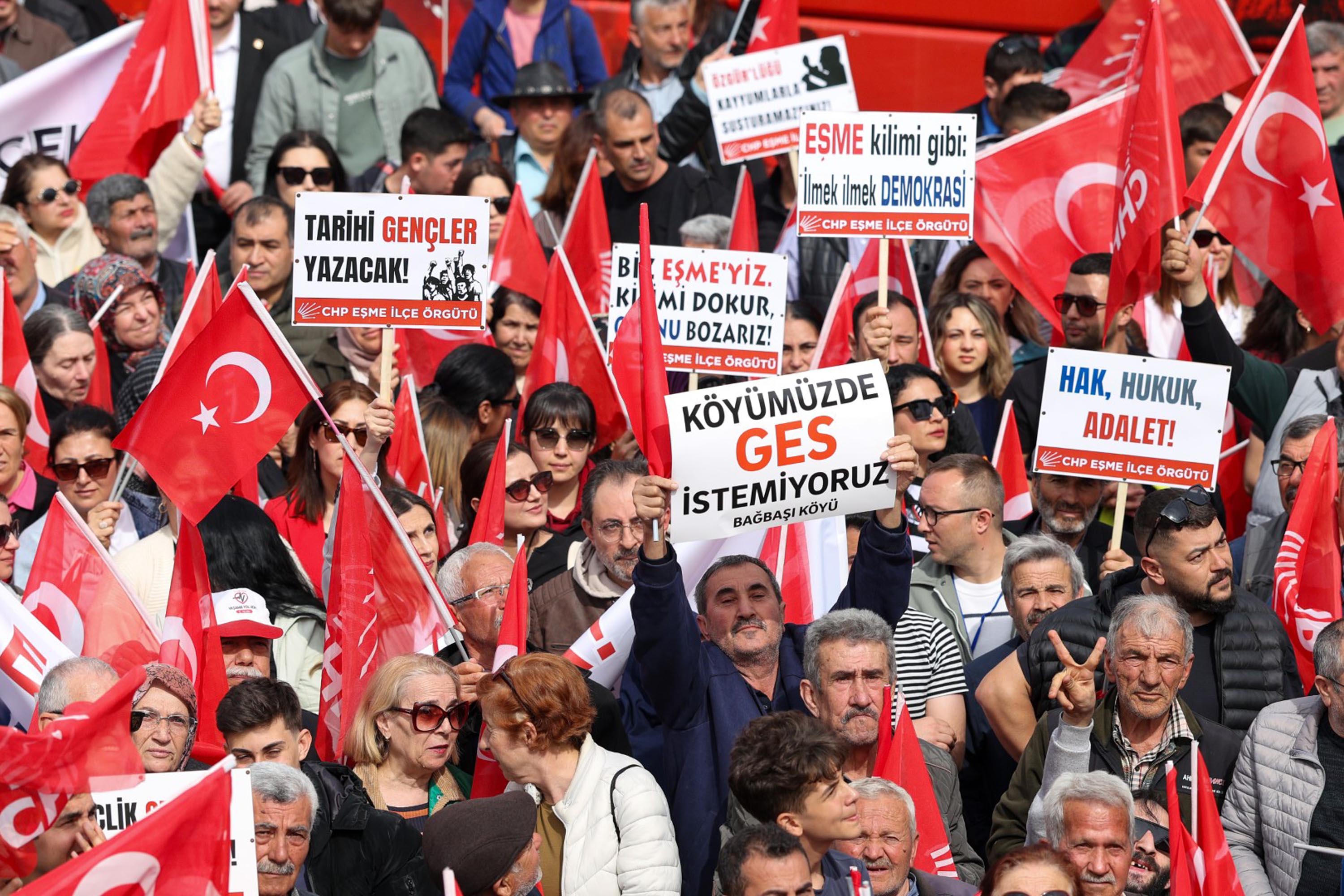 Cumhuriyet Halk Partisi (CHP) Genel Başkanı Özgür Özel, 'Değişim' diyerek yola çıktıklarını belirterek, "Parti değişti, 5 ay sonra yerel seçime gittik. 47 yıl sonra Cumhuriyet Halk Partisi, oldu Türkiye'nin birinci partisi. Uşak'tan tut, Ege'de 9'da 9 aldık. Türkiye'nin yüzde 65'ini aldık, Şimdi, genel seçimlere gidiyoruz. Kimse enseyi karartmasın. Emin olun omuz omuza iktidara yürüyoruz" dedi.
