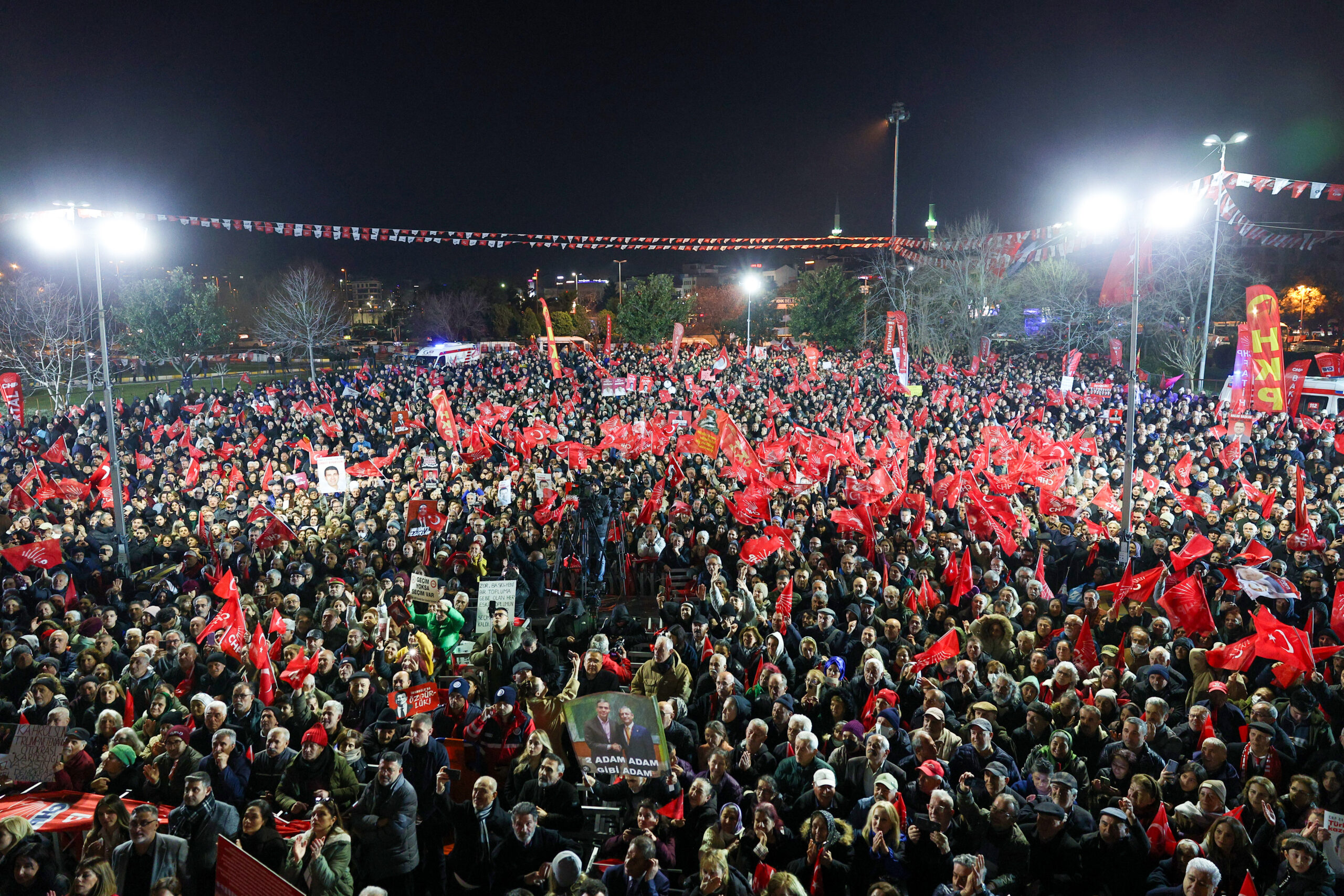 Cumhuriyet Halk Partisi Genel Başkanı Özgür Özel, Pendik’te gerçekleştirilen, İstanbul 1’inci Bölge, Millet İradesine Sahip Çıkıyor Mitingi’ne katıldı. Burada konuşan Cumhuriyet Halk Partisi Lideri Özel, “‘Fabrikada, sokakta, alnı açık duranların yanında dev gibi doğruldular. Zafer yakında. Bilek var vuruşmaya, güç var konuşmaya, soluk var harcanmaya. Zafer yakında. Can var verilecek, kardeş var ayakta, kardeşe can feda. Zafer yakında.’ Canım İstanbul’a, Anadolu yakamıza merhaba. Selam olsun Pendik sana, selam olsun seçtiğine sahip çıkanlara, iradesine sahip çıkanlara. Bugün İstanbul’un Anadolu’ya açılan kapısındayız. Pendik’in yiğit insanlarıyla, Anadolu yakasının yiğit insanlarıyla birlikteyiz. Martın başında soğuk bir havada, büyük bir meydanda omuz omuza, yan yana, yürek yüreğeyiz. 19 Mart darbesinden neredeyse bir yıl sonra, darbenin yıldönümüne bir hafta kala 97’nci eylemde hep beraberiz. Hoş geldiniz, şeref verdiniz” dedi. Özel, şunları söyledi: