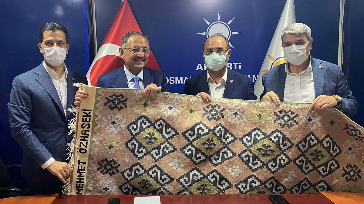 Konuşmasının ardından AK Parti Osmaniye İl Başkanı Seydi Gülsoy, Özhaseki’ye üzerinde adının yazdığı el dokuması Karatepe kilimi hediye etti.
