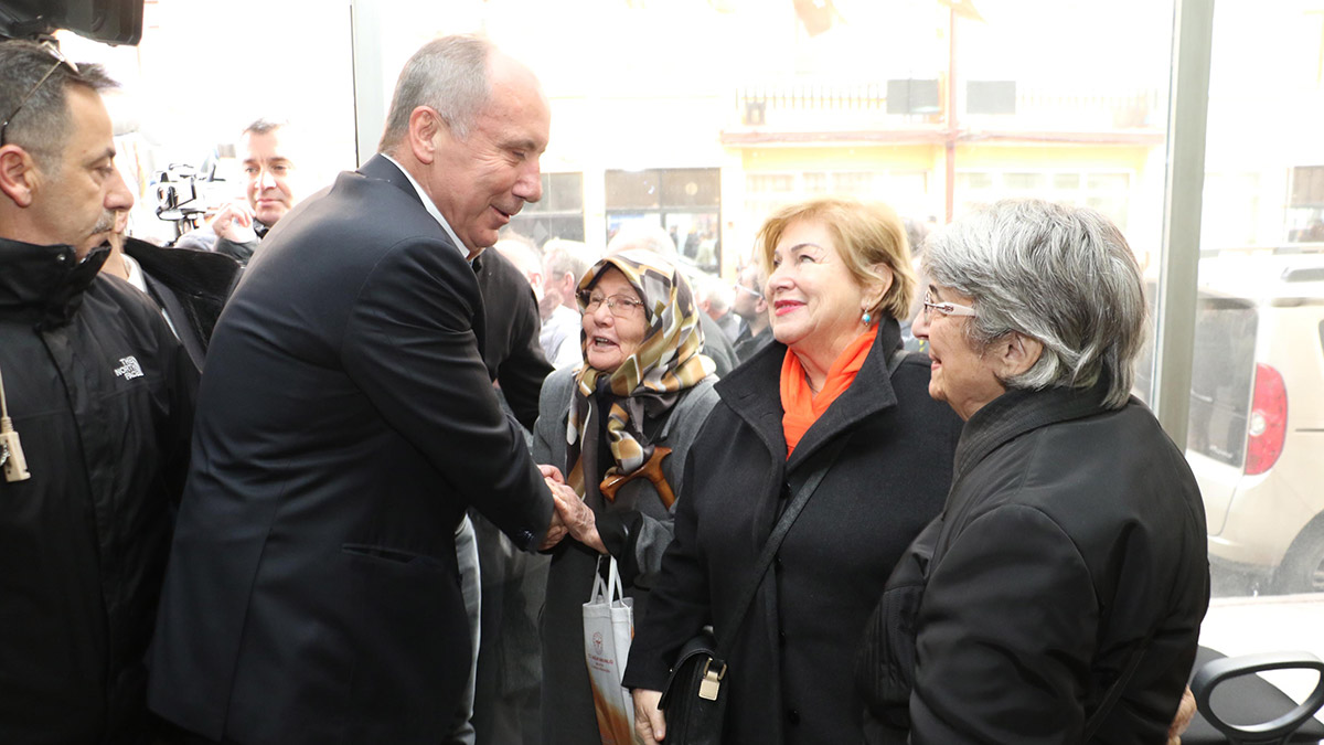 Açıklamalarının ardından İnce, sohbet ettiği partililerle hatıra fotoğrafı çektirdi.