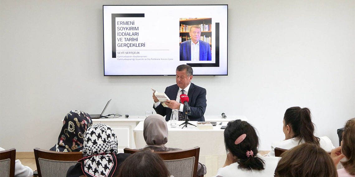 Cumhurbaşkanı Başdanışmanı Prof. Dr. Seyit Sertçelik, Emine Erdoğan’ın Onursal Başkanı olduğu Toplumsal Gelişim Merkezi Eğitim ve Sosyal Yardımlaşma Derneği (TOGEMDER)’nin Kısıklı’daki merkez binasında düzenlenen ‘Ermeni Soykırımı İddiaları ve Tarihi Gerçekler’ konulu programda konuştu. Programa, İstanbul Valisi Davut Gül’ün eşi Gülden Gül, Üsküdar Kaymakamı Adem Yazıcı, TOGEMDER Başkanı Mihrimah Belma Sekmen, TOGEMDER Yönetim Kurulu üyeleri ve çok sayıda davetli katıldı. Osmanlı Devleti’ni kötülemek amacıyla ‘Ermeni Soykırımı’ başlığı altında yayılan yalan haberlerin günümüz gündemini hala meşgul ettiğini söyleyen Sertçelik, “Ermeniler, abartmaya meyilli bir toplumdur. Hatta Rus istihbaratçılar, Ermenilerin verdikleri kayıp bağlamında rakamların sonuna hep bir ‘0’ attığını söylerler. 100 kişi öldüyse, bin derler” dedi.