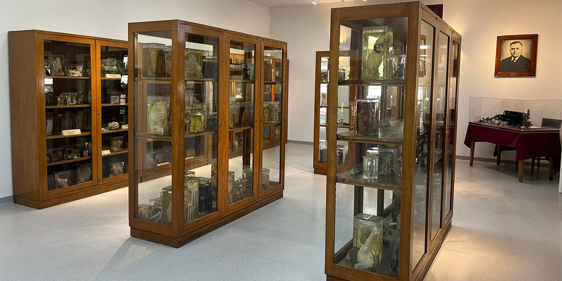 “Eğitim sırasında da öğrenciye hangi sistem anlatılıyorsa ilgili olan patolojik organ varsa gösteriyoruz. Bunların dışında tümörler diye ayrı bir bölümümüz var. Orada da sayı çok fazla olduğu için sistem bazlı değil ama kökenine göre bölerek o tümörleri de kendi içerisinde kategorize ederek sergiledik. Kanatlı hayvanlar olarak da ayrı bir bölümümüz var. Lisans eğitimimiz süresince öğrencilerimize program gereği tür bazında da hayvanlarımız mevcut olduğu için onlar da eradike edilen (hastalığın etkeni ile birlikte yeryüzünden tamamen yok edilmesi), kontrol edilen ve şu an görülen hastalıkların bilgilendirmesini yapıyoruz. Hem insan sağlığına hem de hayvan sağlığına büyük oranda zarar veren hastalıkların makroskobik morfolojik görünümlerinin orijinal hallerinin korunarak sunulması, sergilenmesi ve nesilden nesle aktarılmasını sağlarken, bunları eğitim materyali olarak da kullanıyoruz.”