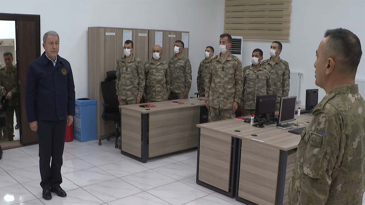 Bakan Akar, Şanlıurfa’da Kara Kuvvetleri Komutanlığı İleri Müşterek Harekat Merkezi’nde, Suriye ile Irak’ın kuzeyindeki operasyonlarda ve hudut hattında görevli birlik komutanlarıyla video konferans görüşmesi gerçekleştirdi. Bakan Akar, sahadaki son duruma ilişkin bilgi aldı, talimatlar verdi.