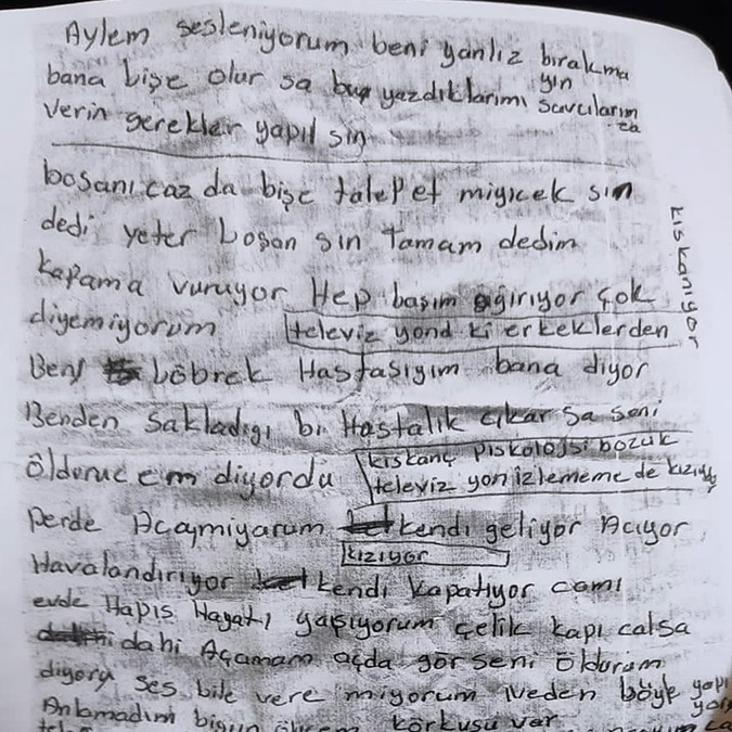 Özdemir’in “Başıma bir şey gelmesi halinde sorumlusu Muhammed Özdemir’dir. Bu mektup savcılara verilip gereken yapılsın” yazdığı öğrenildi. Not kağıdında, “Hastalığım beni zaten bitirdi, her gün ağlıyorum. ‘Sana köpek muamelesi yapacağım’ dedi. Benim boşanma gibi niyetim yoktu. Beni hep dürtüyor, boşanacağız diyerek. En ufak bir şey olduğunda hemen dövüyor beni. 2 ay önce 60 tane ilaç içtim. Bana psikolojisi bozuk baskısı yapıyor. Evde güneşlikleri bile açamıyorum. Gelip kendisi açıyor. Ben cama yaklaşsam, ‘Cama dokunursan seni öldürürüm’ diyor. Yanına gelmeseydim, bana kezzap atacağını söyledi” yazdığı görüldü.
