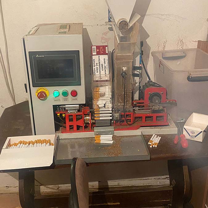 Yapılan operasyonda işyeri sahibi M.A gözaltına alındı. İşyerinde yapılan aramalarda, 400 adet sigara, 1 adet tütün sarma makinası, 68,5 kilogram kaçak tütün ele geçirildi.