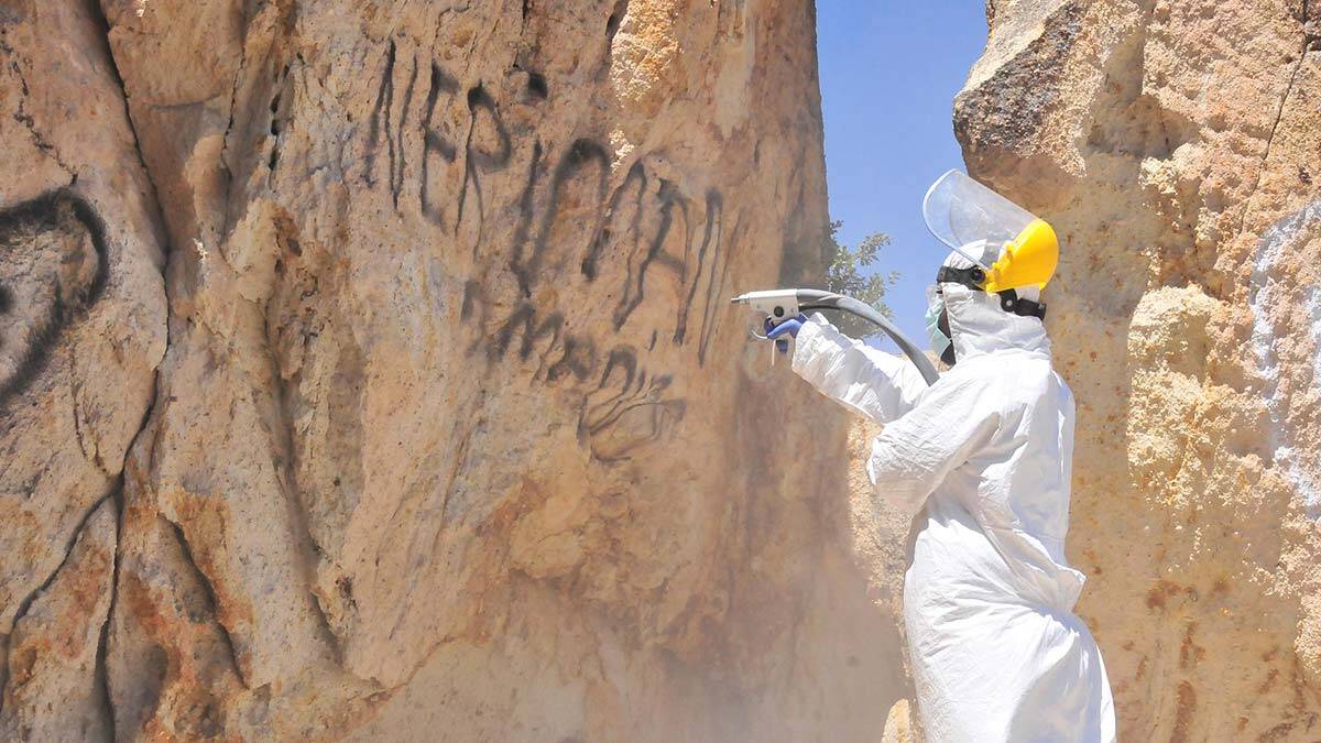 Türkiye’nin önemli turizm merkezlerinden Kapadokya bölgesinde, sprey boyalarla zarar verilen peribacaları ‘mikro kumlama’ tekniğiyle temizlenmeye başlandı. Nevşehir Valisi İnci Sezer Becel, “İl Jandarma Komutanlığı ve Nevşehir Emniyet Müdürlüğü ekipleri ile sahada bu tür çirkinliği yapanların tespitine yönelik çalışma başlattık” dedi.