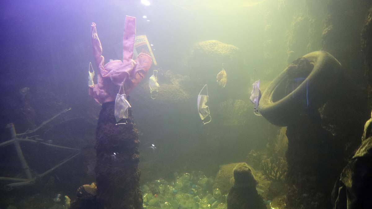 Eskişehir’de Porsuk Çayı’ndan çıkarılan çöpler, Hayvanat Bahçesi’ndeki Sualtı Dünyası’nda oluşturulan ‘Porsuk’ temalı kirlilik akvaryumunda sergileniyor.