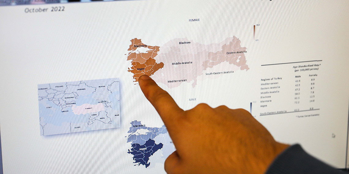 Uzun yılların birikimini derleyip, karşılaştırma yaptıklarını belirten Prof. Dr. Bozcuk, “Türkiye’de kadınlarda akciğer kanseri, erkeklere göre 5’te 1 az sıklıkla gözüküyor. Amerika kıtasına baktığımızda, bu farkın daha kapalı olduğunu görüyoruz. Kadınlar dünya ortalamasından daha düşük kanser riski taşıyor. Türkiye’nin bazı bölgelerinde akciğer kanserinin kümelendiğini görüyoruz. Türkiye’nin doğusunda ve batısında görülen kanserler birbirinden farklı. Bu değişikliği, bu çalışmada gözlemledik” diye konuştu.