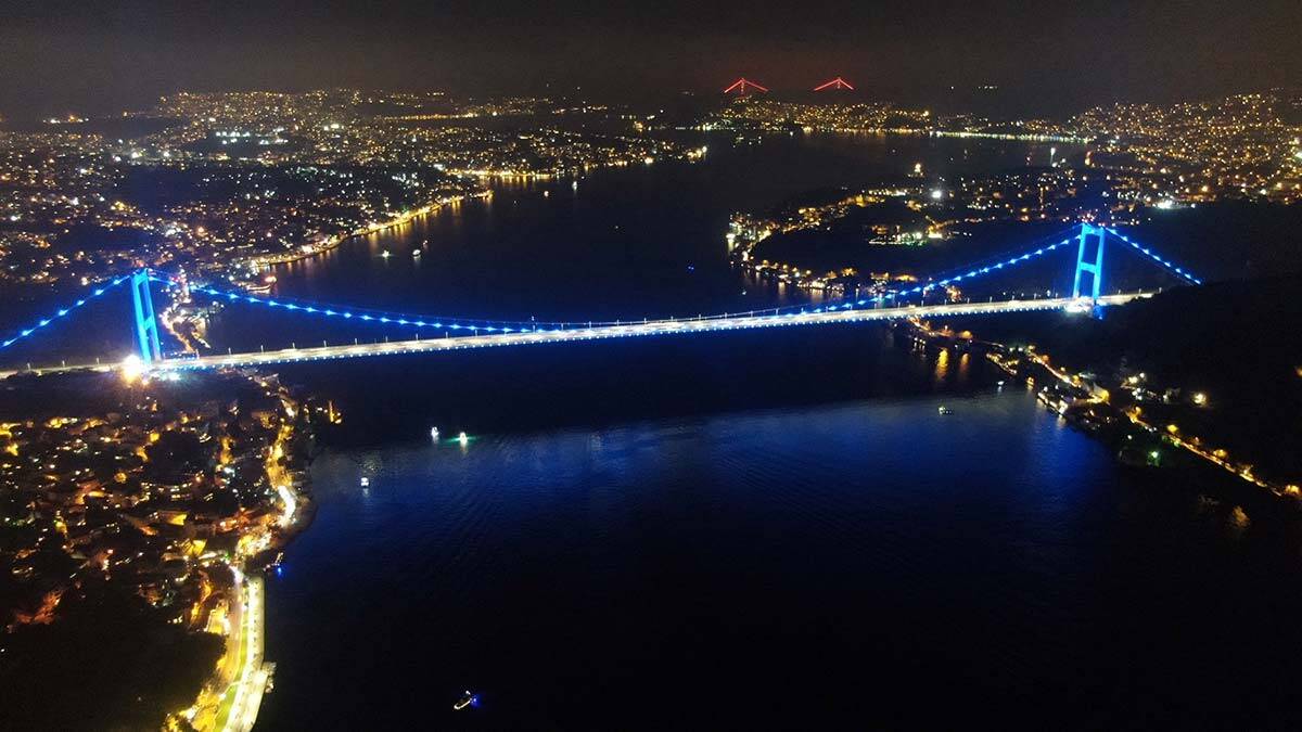 FATİH SULTAN MEHMET KÖPRÜSÜ MAVİ RENK İLE IŞIKLANDIRILDI