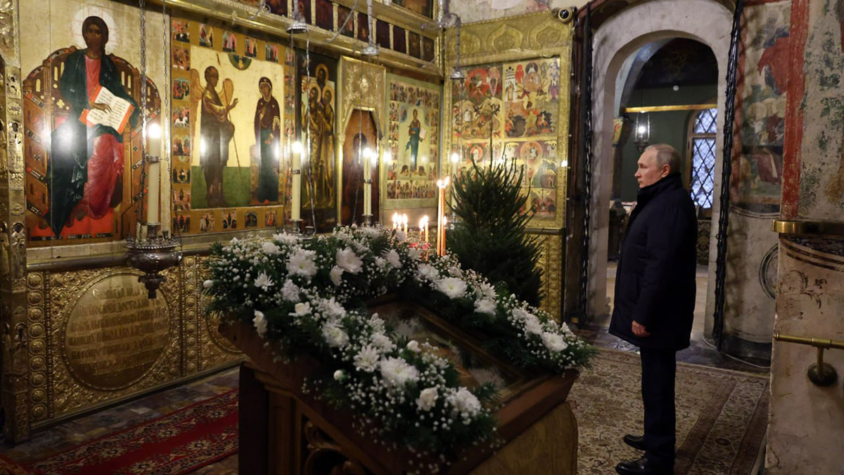 Ortodoks Hıristiyanlarının Noel’ini kutlayan bir mesaj paylaşan Rusya Devlet Başkanı Vladimir Putin tek başına Noel ayinine katıldı.