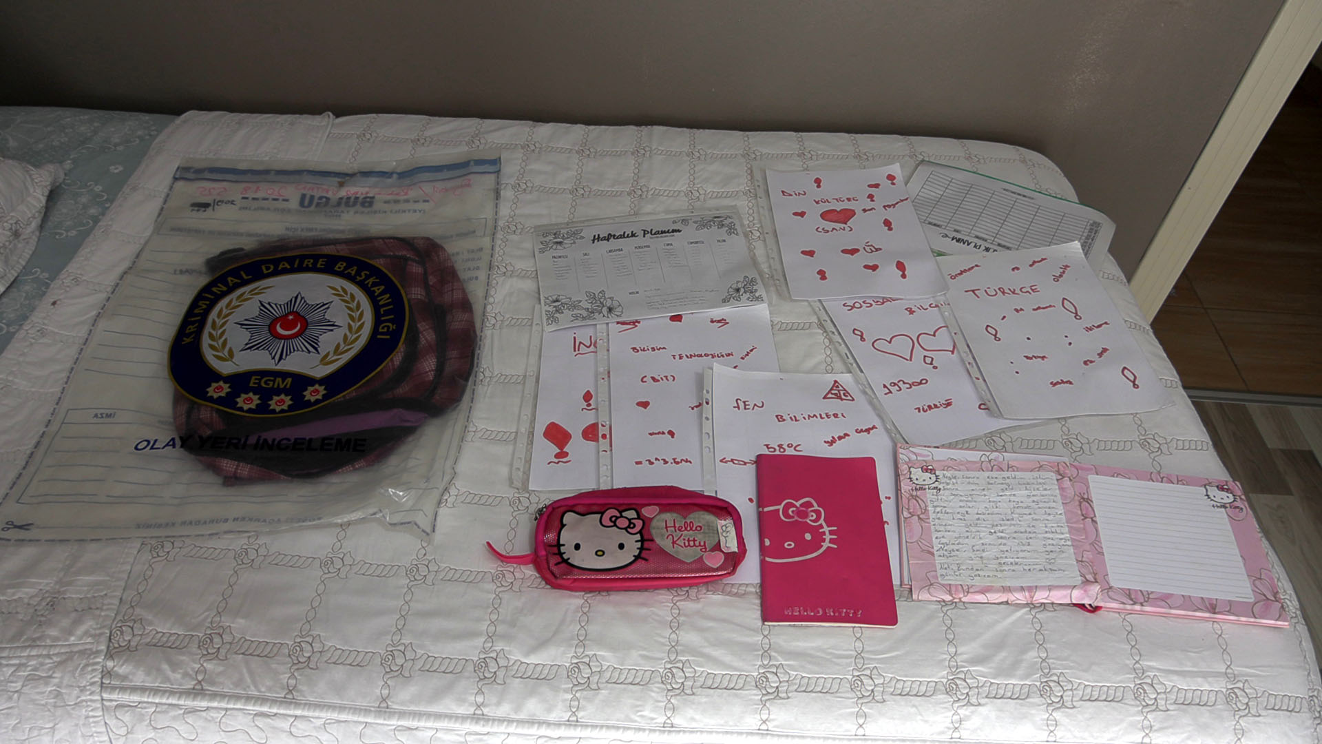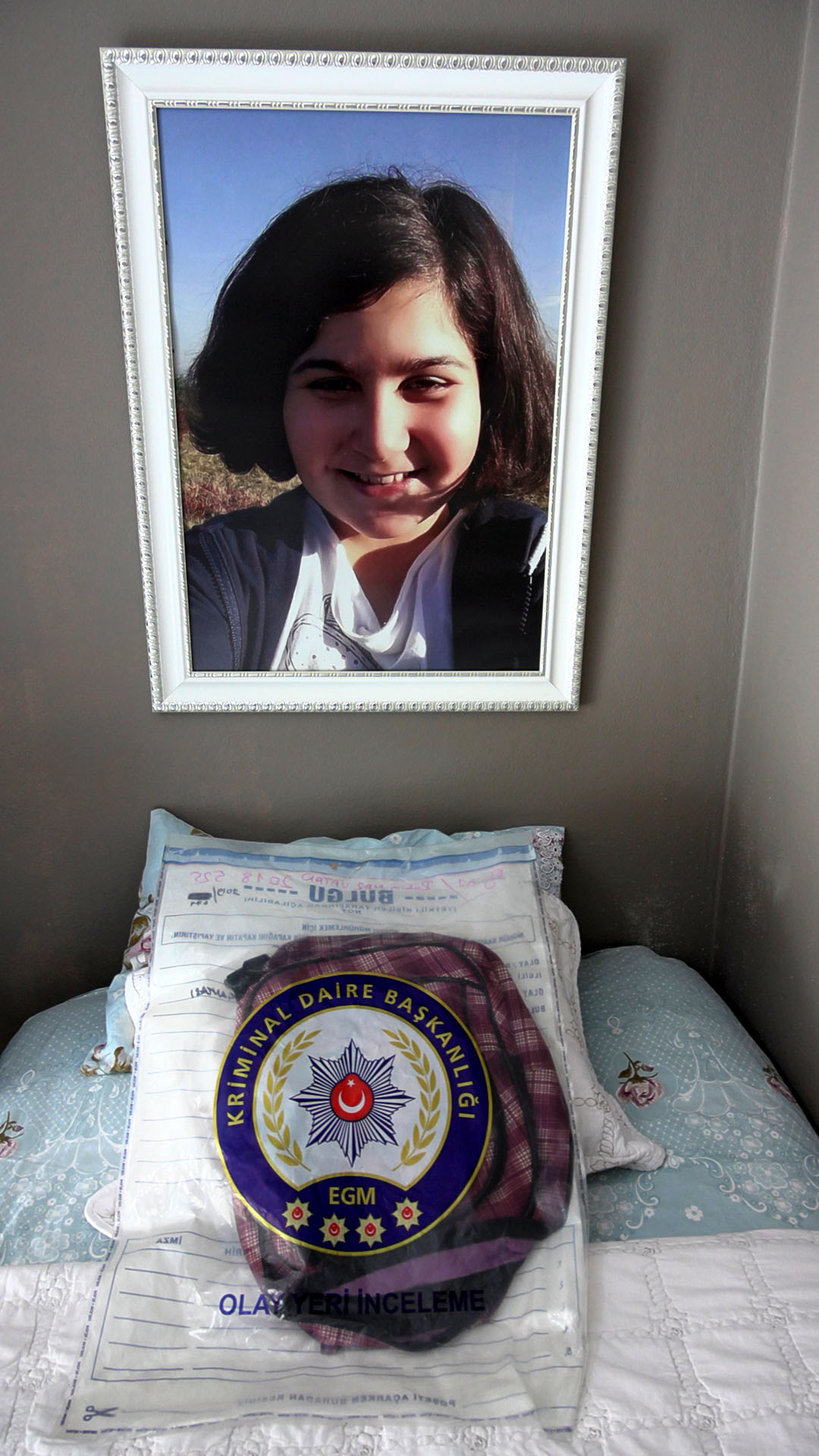 Rabia Naz’ın okul çantası burada. Çantası bana takipsizlik kararı sonrasında verildi. Aldıktan sonra hiçbir yerine dokunmadım. Adli torbada olduğu gibi duruyor.
