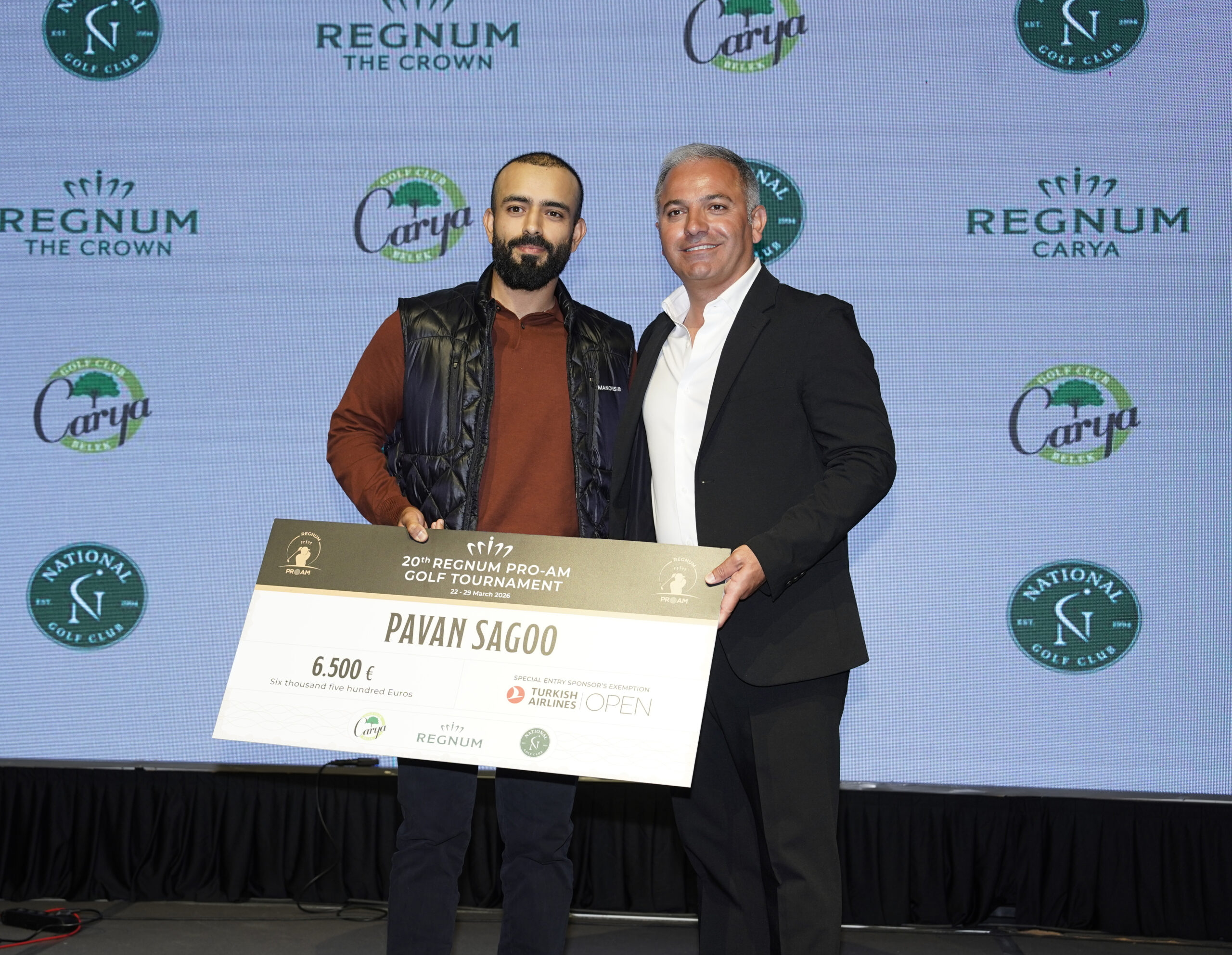 Türkiye'nin en önemli golf organizasyonlarından Regnum Pro-Am Golf Turnuvası, 22-29 Mart tarihlerinde Serik'e bağlı Belek Turizm Merkezi'ndeki Carya ve National golf kulüplerinde gerçekleşti. 30 ülkeden 54'ü profesyonel 216 oyuncunun mücadele ettiği turnuvada Pavan Sagoo profesyoneller kategorisinde saha rekoru kırarak zirveye çıktı. Geçen yıl mart ayında düzenlenen 17. Regnum Carya Pro-Am'in de şampiyonu olan Pavan Sagoo, National Golf Kulübü'nde 66 (-7) oynayarak bugüne kadarki en iyi skora imza attı. Şampiyonluk ödülü olarak 6500 avro kazanan Sagoo ayrıca geçen yıl olduğu gibi bu yıl da Turkish Airlines Open'a katılma hakkı elde etti. Ödül töreninde konuşan İngiliz golfçü performansından memnun olduğunu ve bu yılki Turkish Airlines Open'da daha iyi bir derece yapmaya çalışacağını söyledi.