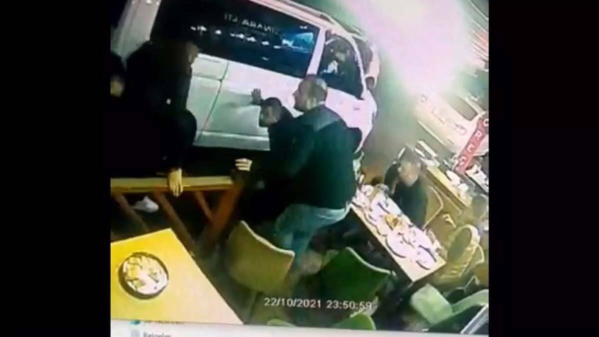 Görüntülerde, restoran önünde bekleyenlerin üzerine seyir halindeki bir otomobilden ateş açılıyor.