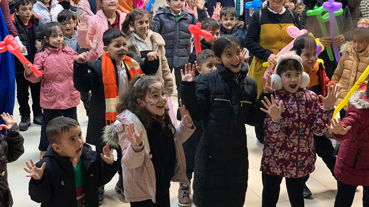 Kahramanmaraş merkezli depremlerin ardından Rize’ye getirilip yerleştirilen depremzede çocuklar için etkinlik düzenlendi. Balonlarla süslenen salona gelen çocuklar palyaçolar eşliğinde dans etti.