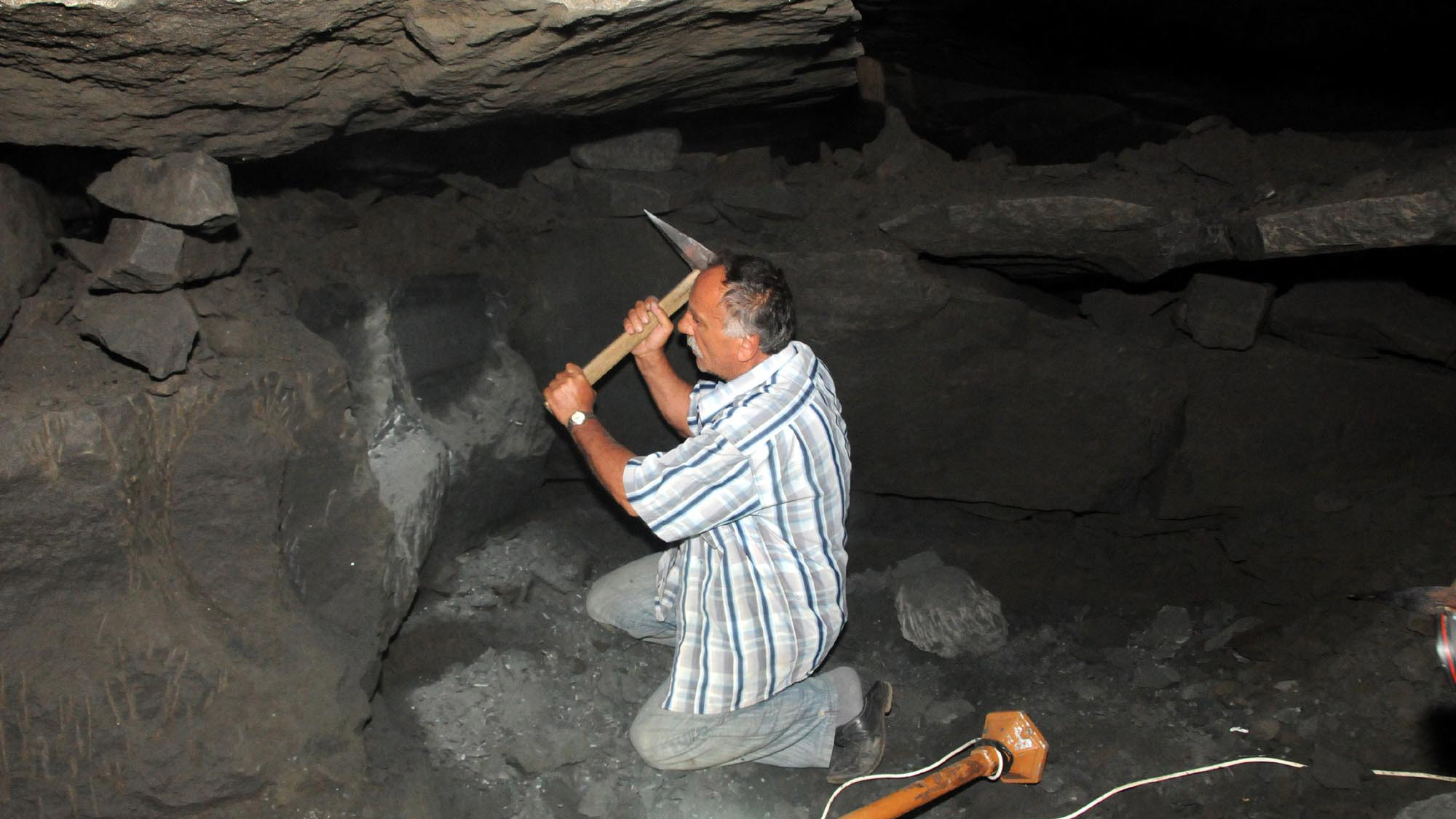 Pileki taşının son ustalarından Mustafa Yılmaz’ın verdiği kursa katılan 12 kişiye mağaradan taş çıkarma eğitimi veriliyor. Kursiyerler, mağarada kazmalarla pileki taşının etrafını oyuyor, çıkardıkları taşı el işçiliğiyle oyup kullanılabilir hale getiriyor.