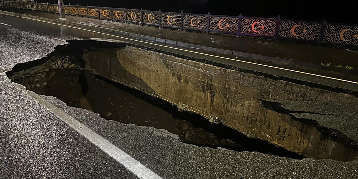 Rize’de sel ve heyelana neden olan sağanak nedeniyle Askoroz Deresi’nde su debisinin artması sonucu Rize- Güneysu karayolunun 3’üncü kilometresinde çökme meydana geldi. Yolda 7 metre genişlik ve 8 metre derinliğinde çukur oluşurken, olay anında şans eseri kaza yaşanmadı. Bölgede önlem alan Karayolları ekipleri yolu, ulaşıma kapattı. Ulaşım, karşı şeritten kontrollü olarak sağlanıyor.