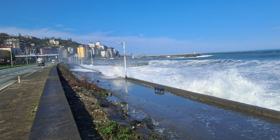 Doğu Karadeniz’de 2 gündür etkili olan fırtına, denizde dev dalgalar oluşturdu. Rize’nin Pazar ilçesinde sabah saatlerinde etkisini artıran fırtınayla birlikte yer yer 3 metreye kadar çıkan dalgalar, kıyı şeridini aşıp, Karadeniz Sahil Yolun kadar ulaştı. Yetkililer, sahil şeridinden uzak durulması konusunda vatandaşlara uyarılar bulundu. Trafik polisleri de Karadeniz Sahil Yolu’nda çalışmalarını yoğunlaştırarak, sürücüleri uyardı.