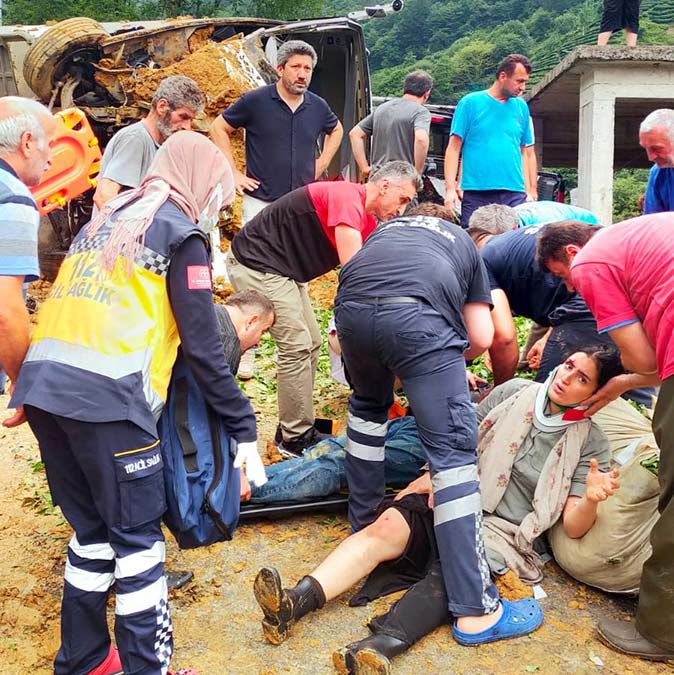 Rize’nin Güneysu ilçesinde turistleri taşıyan tur midibüsü devrildi. Midibüsün metrelerce süründüğü kazada 3’ü ağır 24 kişi yaralandı.