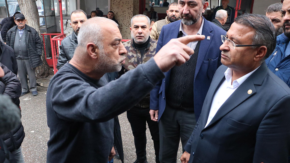 Öte yandan açıklama yaparken Özcan Purçu’nun sözünü kesen kişi, “3 şehit verdik, başsağlığı bile dilemediniz” derken, Purçu ise “Gel ben sana kanıtlayayım. Diledik mi? Dilemedik mi?” dedi. Başka biri ise işsizlikten dert yanıp, yetkililerden iş talebi olduğunu dile getirdi.
