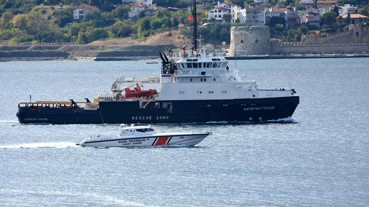 Çanakkale Boğazı’ndan geçen, Rus Donanması’na ait, ‘Captain Guryev’ isimli askeri römorkör, Marmara Denizi’ne doğru yol aldı
