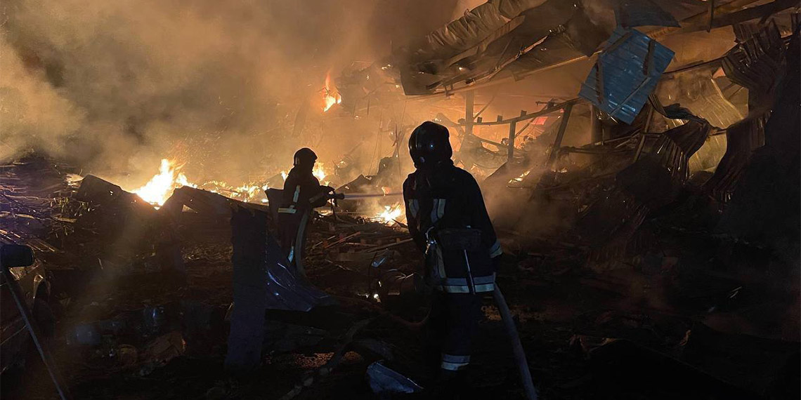 Servis, saldırı sonrası süpermarkette çıkan yangına müdahale anlarını paylaştı.