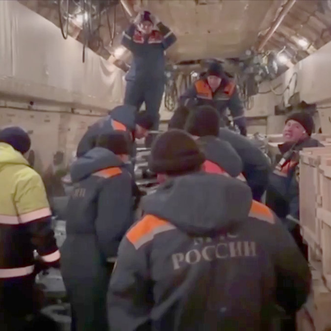Rusya’dan yüzlerce ısıtıcılı çadır ve 9 bin yalıtımlı uyku tulumları başta olmak üzere 36 tonluk ek insani yardım malzemeleri dün gece afet bölgesi Malatya’ya ulaştı.