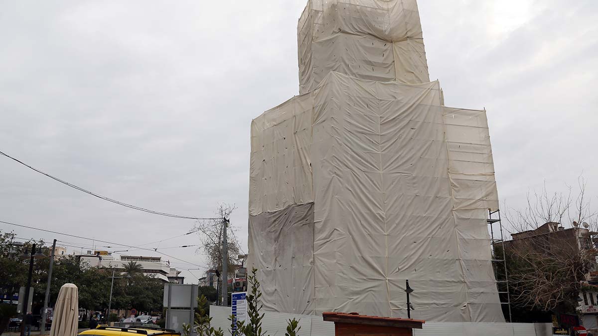 Antalya’nın en önemli sembollerinden, Bizans dönemine ait burçlar üzerine 1900’lü yılların başında inşa edilen Saat Kulesi’nde restorasyon çalışması başladı.