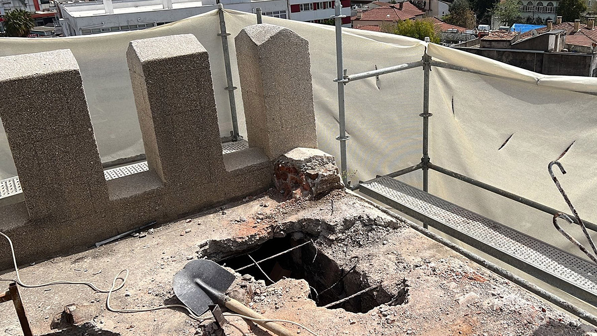 O dönemlerde kulenin içine dökülen beton kütlenin de kaldırıldığını hatırlatan Karabayram, “Kubbe 1940’lı yıllarda fırtınadan dolayı yıkıldıktan sonra, 1960’lı yıllardaki bir müdahalede bu dendanlar yapılmış. Şu an için en önemli konu bu dendanlar temizlendi. Altından da orijinal taş malzeme ortaya çıktı, özel harçlarla sağlamlaştırma işlemi yapmamız gerekiyor. Çünkü kubbe sisteminin oraya sağlam bir şekilde oturması gerekiyor. Bunun için de zemininde kalan betonlar da tamamen temizlenip, yerine Horasan harcı kullanılarak, sağlamlaştırma yapılacak” diye konuştu.