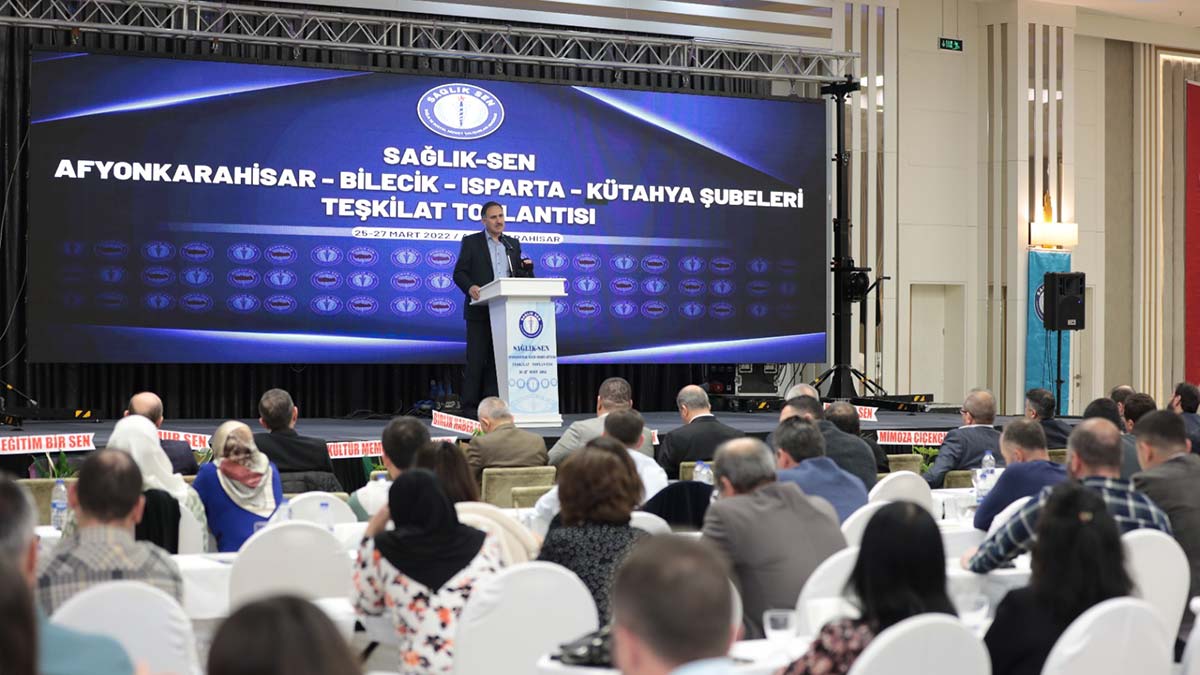 Sağlık-Sen Afyonkarahisar, Bilecik, Isparta ve Kütahya Şubeleri tarafından ortak düzenlenen ‘Teşkilat Toplantısı’ gerçekleştirildi. Toplantıya katılan Sağlık-Sen Genel Başkanı Semih Durmuş, Genel Sekreter Durali Baki, Genel Başkan Yardımcıları Mahmut Faruk Doğan ve Yasin Barutcu, teşkilat mensupları ile buluştu. Sağlıkta şiddet ve malpraktise ilişkin düzenlemeleri içeren kanun teklifini değerlendiren Durmuş, TBMM’de yasalaşarak uygulamaya girecek olan bu düzenlemelerin sağlık çalışanları ve toplum adına önemli olduğunu kaydetti.