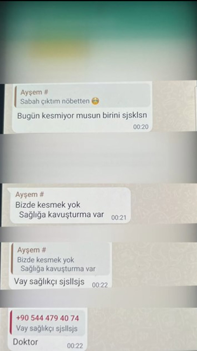 Türkiye’nin konuştuğu sahte doktorun ses kaydı ve yazışmaları ortaya çıktı. Özel bir üniversitenin sağlık bölümü öğrencilerinin yer aldığı WhatsApp grubuna ses kaydı atan Ayşe Özkiraz (20), girdiği ameliyatlar ile ilgili bilgi aktarıyor.