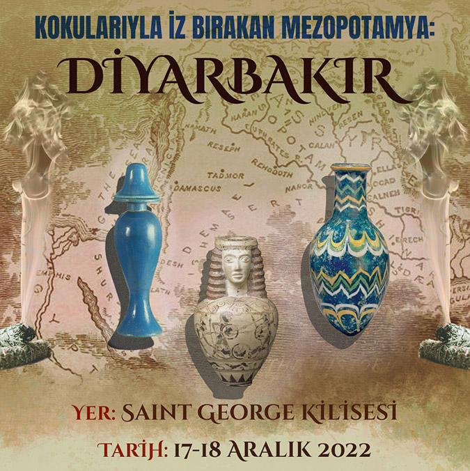 Diyarbakır’daki Saint George Kilisesi 17-18 Aralık tarihleri arasında “Kokularıyla İz Bırakan Mezopotamya Sergisi’ne ev sahipliği yapacak. Arkeoloji, sanat ve koku kültürünü meraklılarıyla buluşturacak sergide koku şişeleri ve koku kaplarının replikaları yer alacak.