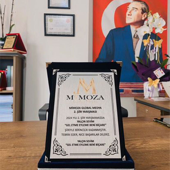 Eğitimci, Şair ve yazar Yalçın Sevim Mimoza 2. Şiir Yarışması’nın birincisi oldu! Ankara’da gösterdiği üstün performansla birincilik ödülünü kazandı.