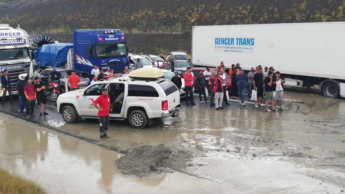Bir süreden beri sıcak havanın etkisinde olan Erzincan’da bugün saat 16.30 sıralarında yağmur etkili oldu. Yüksek kesimlerde sağanak halinde yağan yağmur Erzincan-Sivas karayolunda 2 bin 160 metre rakımlı Sakaltutan Geçidi’nin kaçış rampalarında heyelana sebep oldu. Yağmur sularıyla birlikte akan çamur, karayolunu ulaşıma kapattı. Heyelan sebebiyle Erzincan ve Sivas tarafından onlarca araç kuyruk oluşturdu. Trafik ekipleri, Erzincan çıkış noktasında araçları beklemeye aldı.