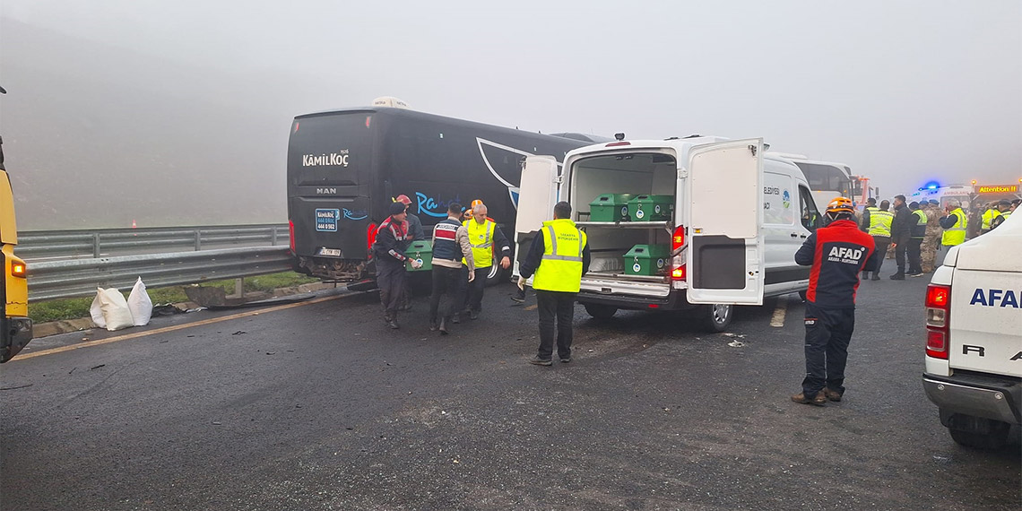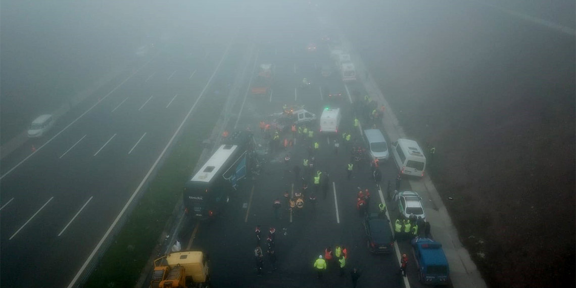 Sakarya’da, Kuzey Marmara Otoyolu’nda 10 kişinin öldüğü 59 kişinin de yaralandığı zincirleme kazanın detayları ortaya çıkmaya başladı. Yoğun sisin oluştuğu yolda, ilk olarak sol şeritte yavaşlayan kamyonete arkasından gelen yolcu otobüsü çarptı. Araçlar, yolun sol şeridinde kaza nedeniyle dururken, otobüsteki yolculardan bazıları da yola indi. Sis nedeniyle görüş mesafesinin düştüğü yolda, arkadan gelen, aralarında 2 yolcu otobüsü ve 2 TIR’ın da olduğu 5 araç daha kazaya karıştı. Kazada ölenlerin arasında, otobüsten yola inen yolcuların da bulunduğu belirtildi.