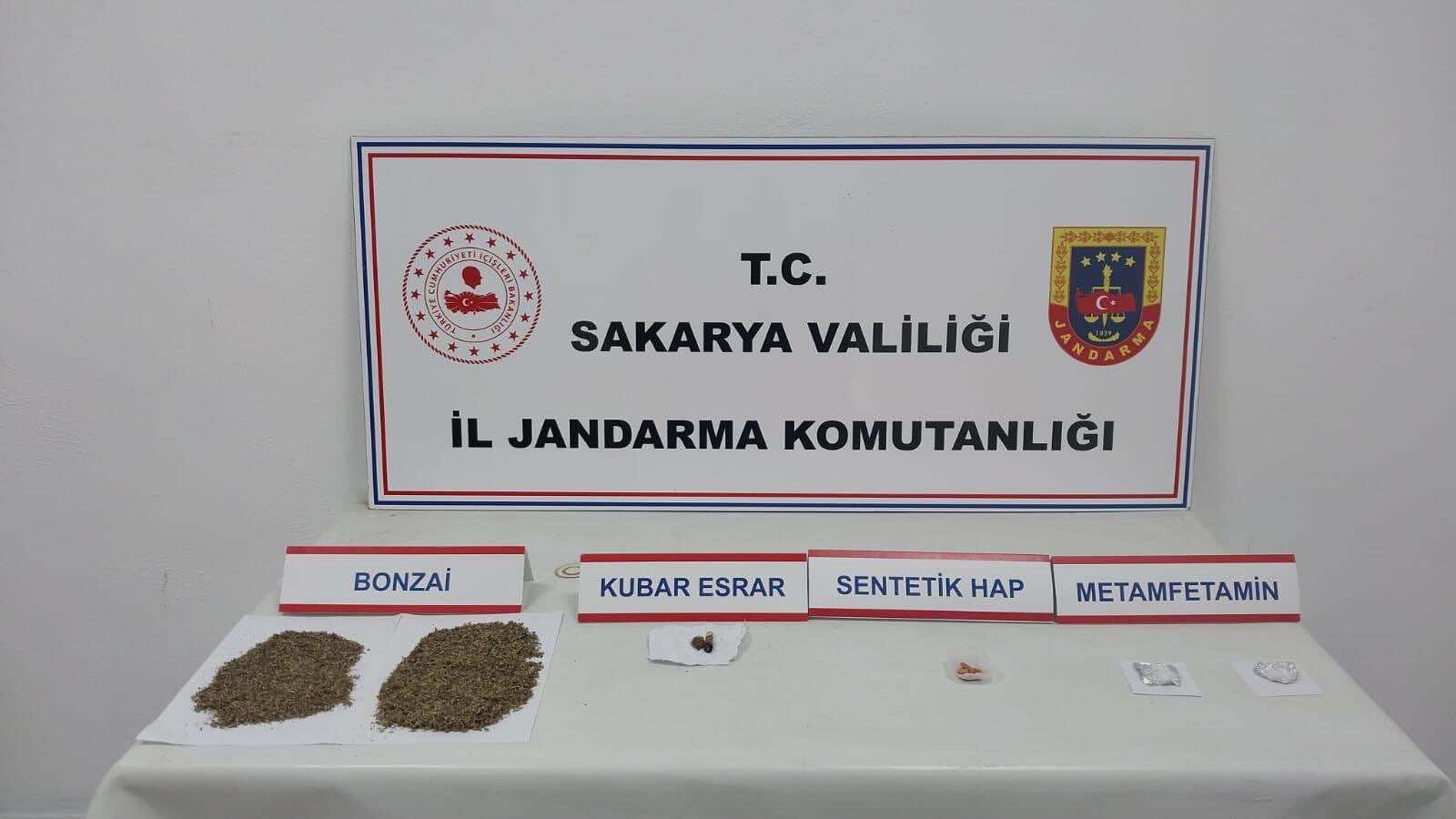 İl Jandarma Komutanlığı ekipleri tarafından uyuşturucu satışı yaptığı tespit edilen şüphelilere yönelik Adapazarı, Hendek ve Serdivan ilçelerinde operasyon düzenlendi. Operasyonda 5 kişi gözaltına alında. Şüphelilerin adreslerindeki aramalarda 498 sentetik hap, 150 gram ağırlığında bonzai, 5 kök kenevir bitkisi, 4 gram sentetik kannabinoid ham maddesi, 2 gram metamfetamin, 3 gram kubar esrar, 9 gram aseton, 2 uyuşturucu kullanma aparatı ele geçirildi.