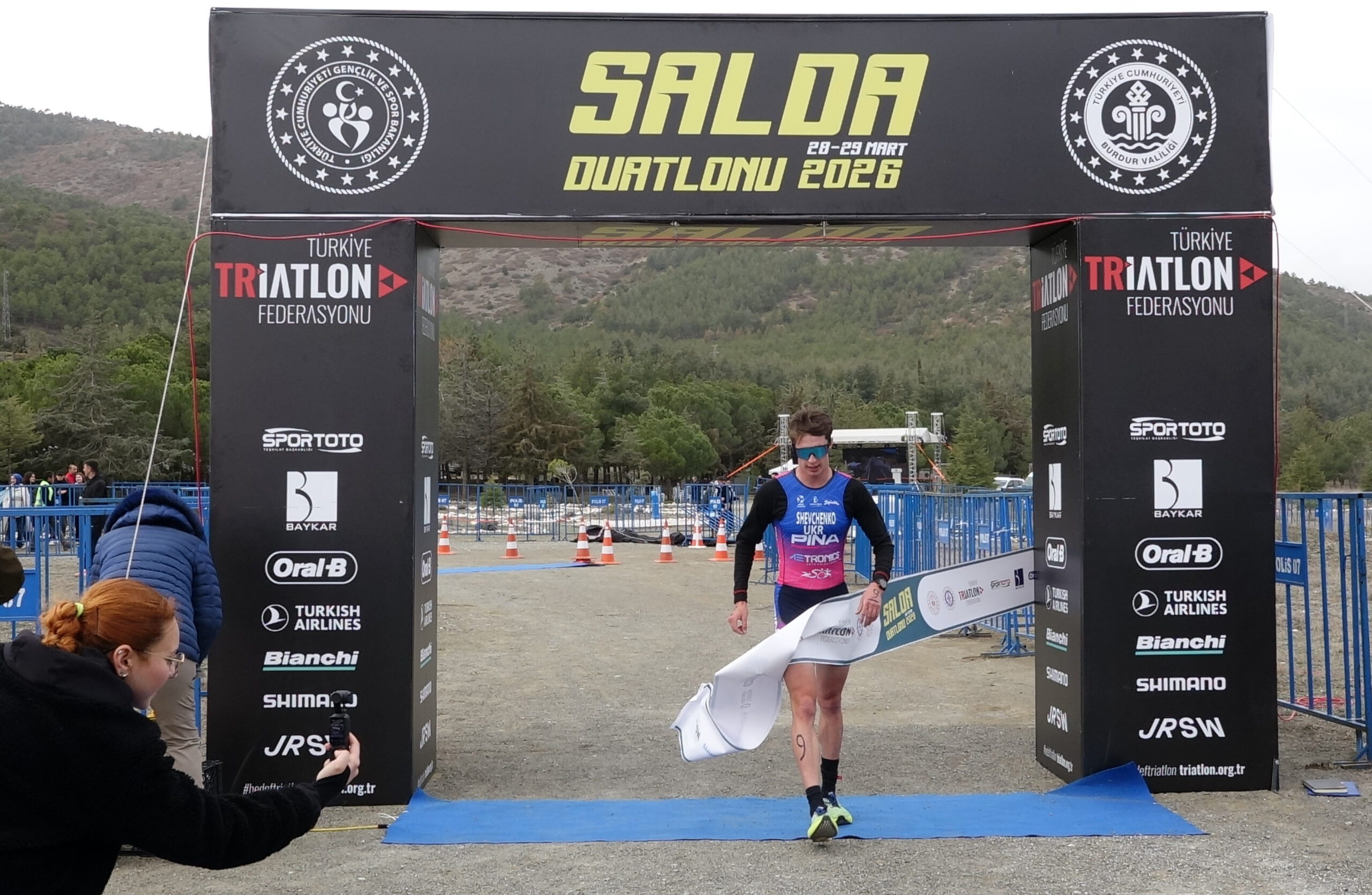 Burdur'un Yeşilova ilçesindeki Salda Gölü'nde düzenlenen Salda Duatlonu Türkiye Kupası yarışlarında elit erkeklerde Ivan Shevchenko, elit kadınlarda Dilara Kara birinci oldu.
