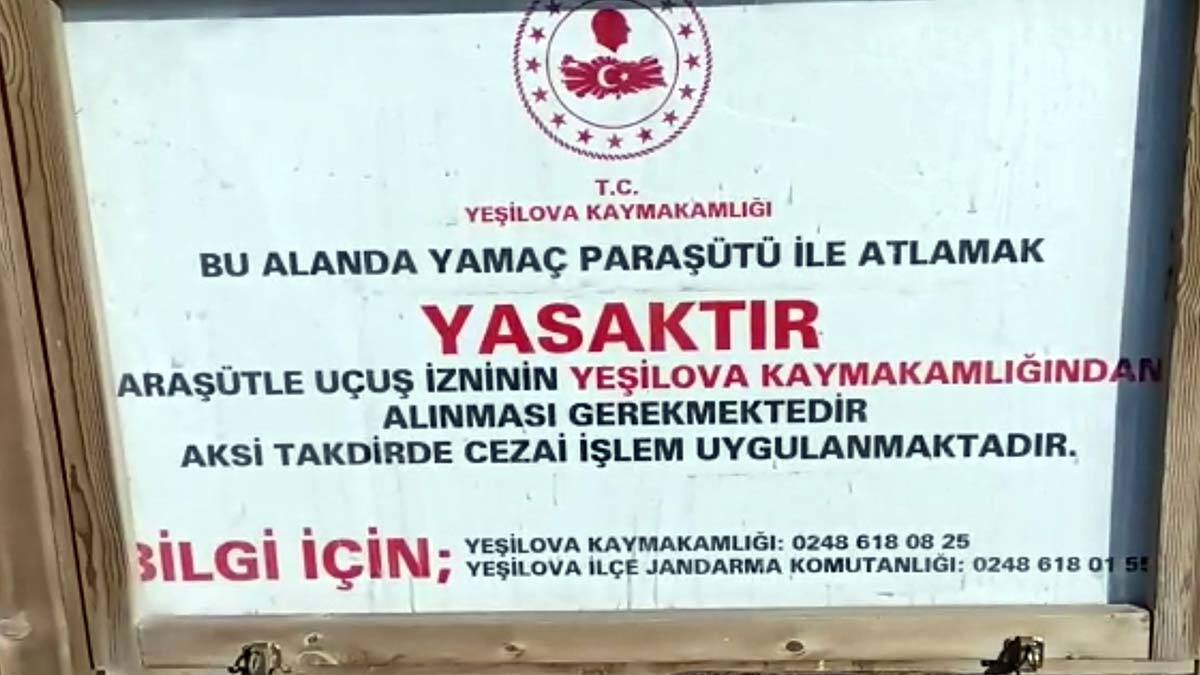 Burdur’da Yeşilova Kaymakamlığı, Salda Kayak Merkezi’ne çıkan yol üzerinde paraşütle izinsiz atlayışı yasakladı