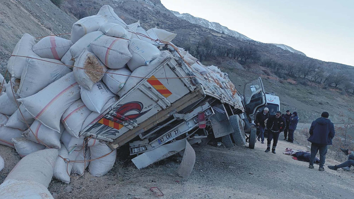 Adıyaman’ın Sincik ilçesinde, buzlanan yolda devrilen saman yüklü kamyonun şoförü Bilal Karakeçiden (51) öldü, oğlu Hüseyin Karakeçiden (21) ise yaralandı.