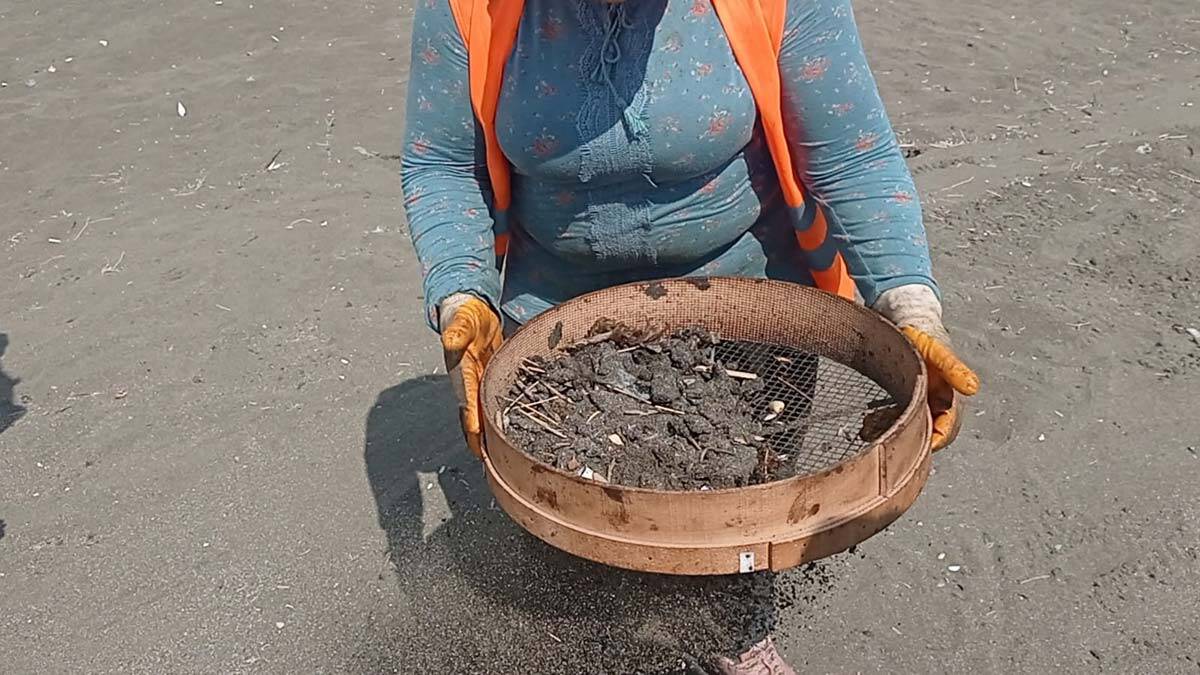 Suriye’deki enerji santralinden sızan petrol atıkları, Hatay’ın Samandağ sahilinden elekten geçirilerek temizlendi