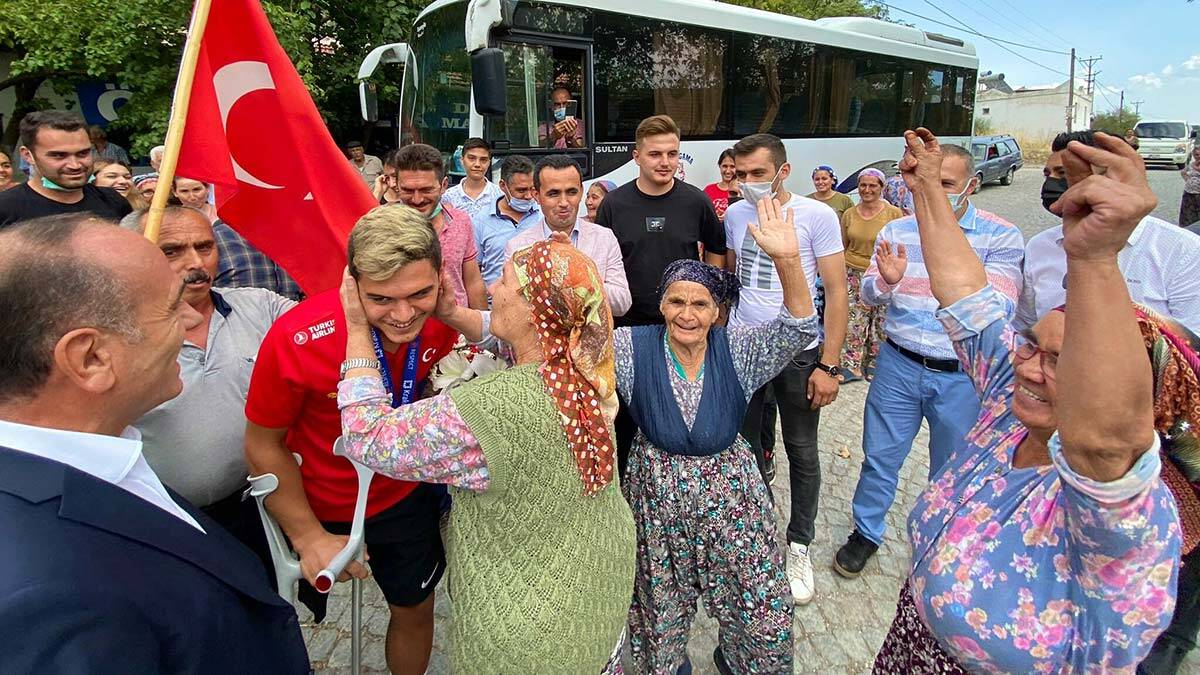 Şampiyon sporcunun Narlıca Mahallesi’ndeki baba evinde düzenlenen karşılama törenine Bergama Kaymakamı Mahmut Kaşıkçı, Belediye Başkan Yardımcısı Aşkın Uyar ve mahalle halkı katıldı.