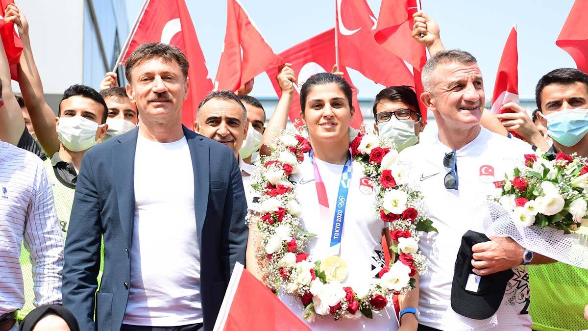 Olimpiyat şampiyonu Busenaz Sürmeneli, “Bu madalyayı ülkeme getirdiğim için çok mutluyum. Bu sene Olimpiyat Oyunları’nda ilkleri yaşadık. Ringe çıkan ilk kadın boksör oldum. 17 sene sonra kadınlarda altın madalya geldi. Bütün duyguları aynı anda yaşadım. Olimpiyatın nasıl bir sevinç olduğunu bilmiyordum. Rabbim bu sevinci bize nasip etti. Sevinçlerin en büyüğünü yaşadım. Bu madalya ‘Türk kadını yapamaz’ diyenlere gelsin. Türk kadını isterse her şeyi yapar.