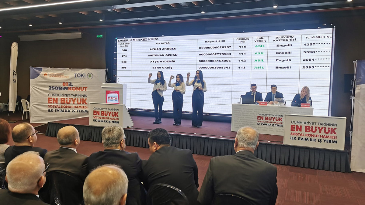 Çevre Şehircilik ve İklim Değişikliği Bakanlığı ile Toplu Konut İdaresi (TOKİ) Başkanlığı tarafından 81 ilde şehit yakınları, engelliler, emekliler, gençler ve normal gelirli vatandaşlar için yapılacak olan 250 bin Sosyal Konut Projesi kapsamında Samsun’da yapılacak olan 4 bin 350 konutun kura çekimleri başladı. Şehit Ömer Halis Demir Kongre Merkezinde düzenlenen kura çekilişi Samsun 1’inci Noterliği tarafından yapıldı. Şehit, gazi yakınlarına ayrılan yüzde 5’lik kontenjana başvuran 82 kişi direkt hak sahibi olurken, yüzde 5 engelli vatandaşlara, yüzde 20 emekli ve genç kontenjanı yüzde 50 olarak normal gelirli vatandaşlara ayrılan kontenjanlar için 3 gün sürecek kura çekimleri yapılacak.