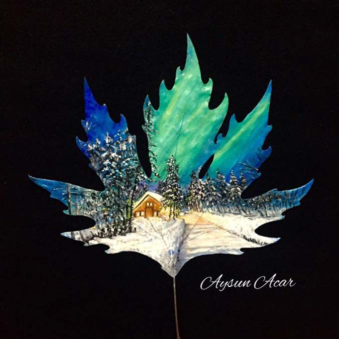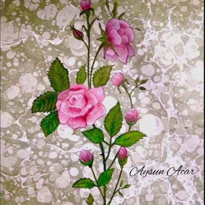 Aysun Hanım’ın ebru üzerine yağlı boya çalışmaları istiridye kabuğu üzerine birçok güzel orijinal çalışmaları var. Yaptığı işi çok seviyor gelecek nesiller için örnek bir öğretmen olabilir.