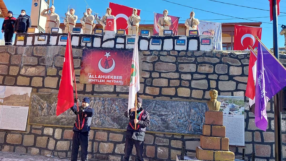 Şehitler anısına saygı duruşunda bulunulması ve İstiklal Marşı‘nın okunmasından sonra temsili sancak töreni yapıldı. Şenkaya Jandarma Komando Komutanlığı’nda görevli bir asker, dönemin askeri kıyafetiyle getirdiği sancağı, temsili olarak bir başka askere teslim etti. Bir asker sancağı göndere çektikten sonra, köy camisinde ezan okundu. Törende askerler tarafından saygı atışında bulunuldu. Törende konuşan Vali Okay Memiş, şunları söyledi: