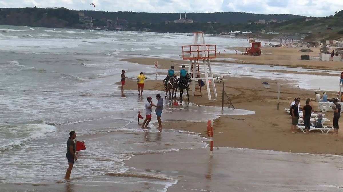 İstanbul İl Jandarma Komutanlığı ekipleri denize girmek için gelen vatandaşları dalgalar ve dip akıntı nedeniyle tehlikeli hale gelen denize girmemeleri için uyarılarda bulundu. Plaja denize girmenin tehlikeli olduğunu belirten kırmızı bayraklar asılırken, atlı ve yaya jandarma devriye ekipleri sürekli dolaşarak vatandaşları uyardı. Vatandaşlara dalgalı ve dip akıntılı denizlerde yüzmenin tehlikelerini anlatan broşürler dağıtıldı.