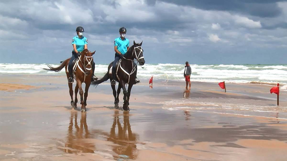Sarıyer’de yaya ve atlı jandarma devriye ekipleri halkı denize girmemeleri konusunda uyardı