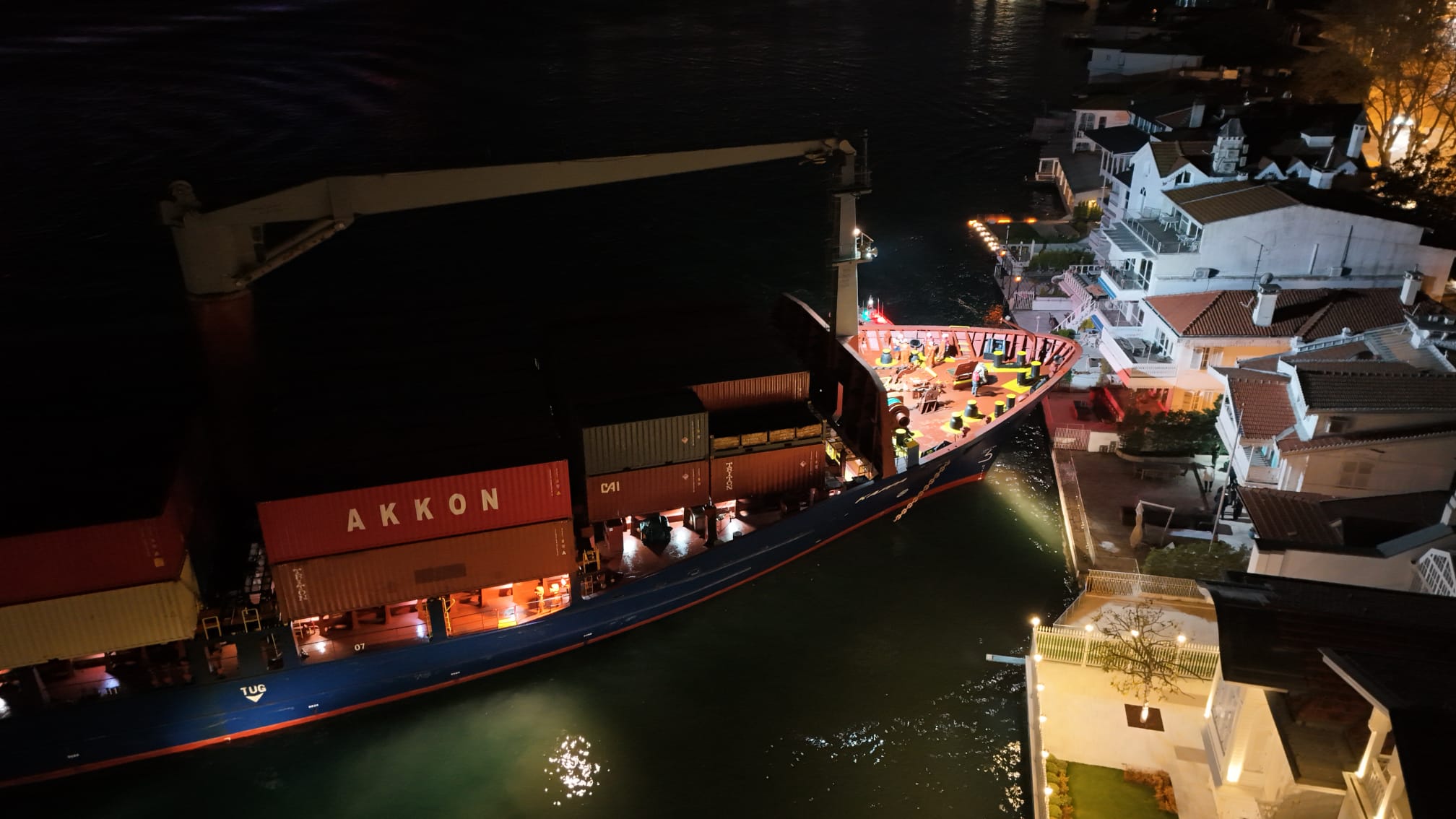 İstanbul Boğazı'nda dümen arızasından kaynaklanan nedenle Sarıyer, Yeniköy açıklarında karaya oturan konteyner gemisi, uzun süren çalışmaların ardından kurtarıldı.