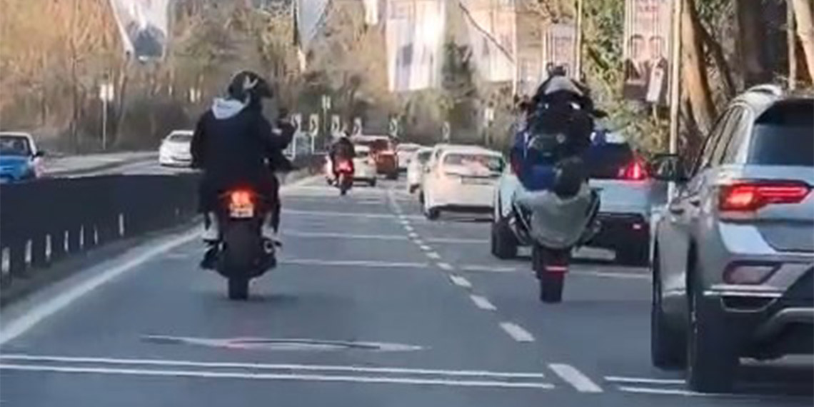 Görüntüler, dün öğlen saatlerinde Hacıosman Bayırı Caddesi’nde trafikteki bir sürücü tarafından cep telefonu kamerasıyla kaydedildi. Görüntülerde, arkasında bir yolcunun da bulunduğu motosikletli sürücü, akan trafiğe aldırmadan tek teker üstünde uzun süre ilerliyor. Seyir halindeki araçların arasında makas da attan motosikletlinin hem kendini hem de trafiği tehlikeye attığı görülüyor. Diğer 2 motosiklet sürücüsünün de yol boyunca sırayla tek teker üzerinde ilerlediği iddia edildi. Motosikletli 3 sürücü de bir süre sonra gözden kayboldu.